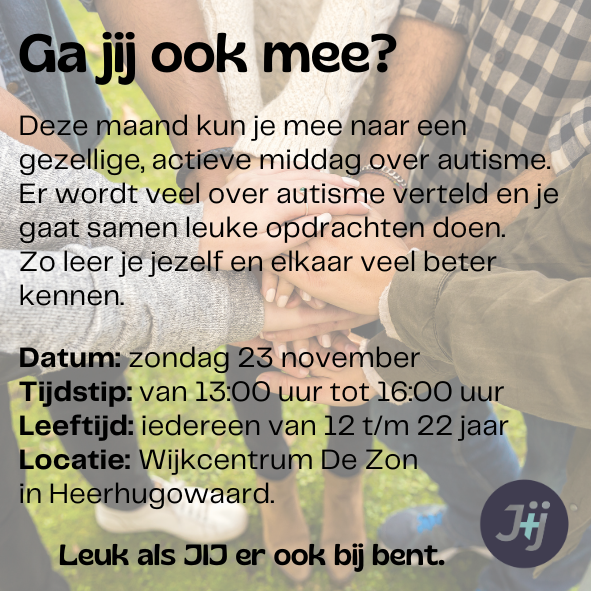 Wat ga je doen: op deze middag wordt een Autisme Belevings Circuit georganiseerd. Er wordt veel verteld over autisme zodat jij jezelf, en anderen beter leert kennen.
